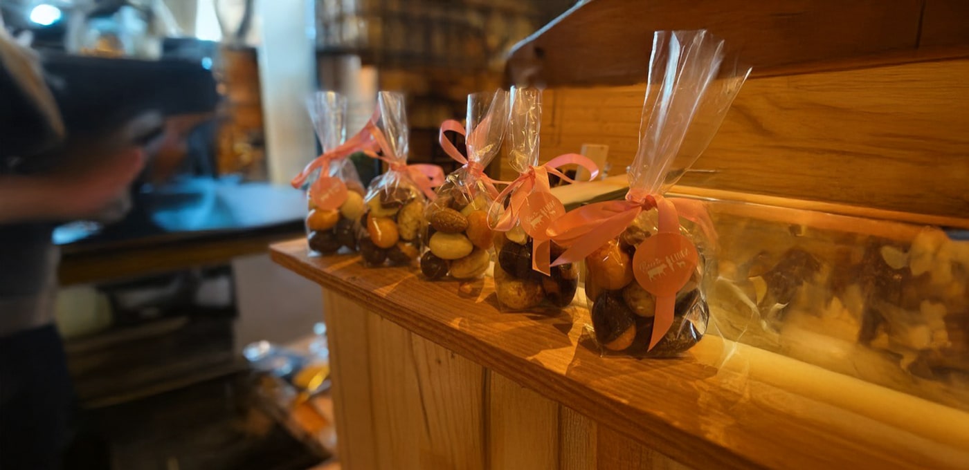 Voor zoetekauwen liggen er ambachtelijke chocolaatjes van Boerin Linda uit Glane en Pelles uit Deurningen, en de huisgemaakte koekjes en pindarotsjes van Erve Meinders. Stuk voor stuk gemaakt met liefde, aandacht én de kracht van een bijzondere groep makers. De honing van Imkerij Getkot uit Nutter brengt precies die zachte, volle smaak die alleen lokale bijen kunnen leveren.